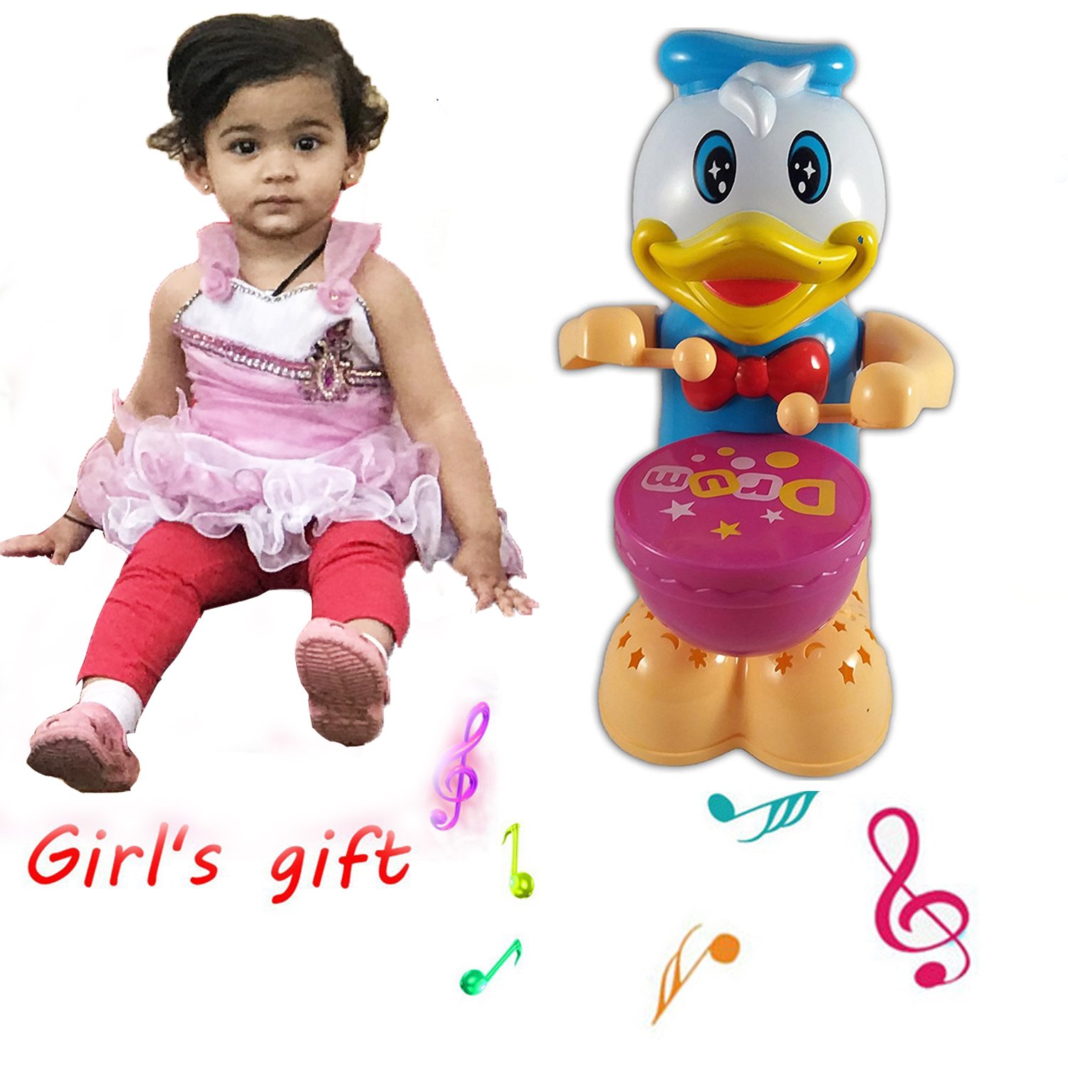– It has many actions like rotation, beating the drum, music with colourful lighting.