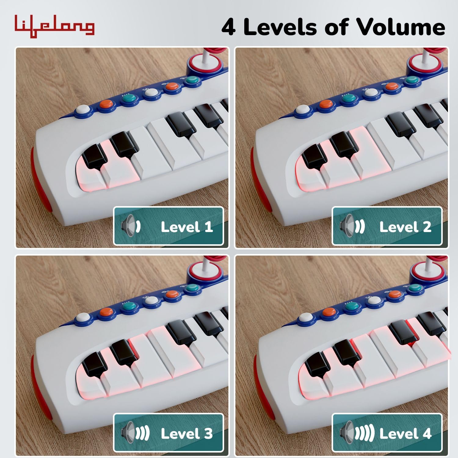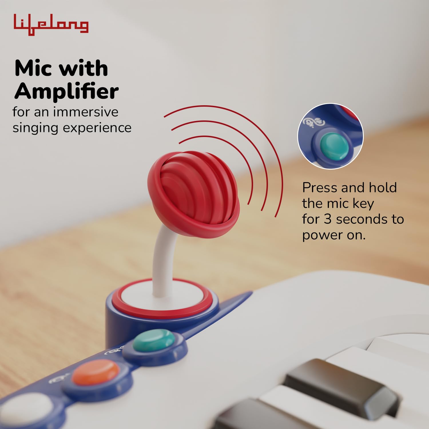- Guided Play & Singing Fun – The Conductor & Arrow Buttons light up keys to guide kids in interactive play, encouraging them to follow along. The Microphone & Plus Button allows volume adjustment and microphone control for an engaging singing experience.