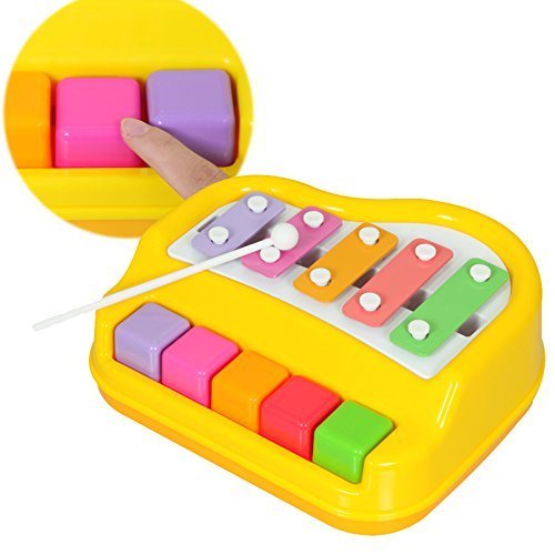 Toys and Games VIBRANTLY COLORED: Vibrantly colored metal keys that produce the clearest tones, this colorful and sturdy xylophone instrument will help your kids create the most magical sounds. HELPS IN MUSICAL DEVELOPMENT: They are safe for ages 3 years and up and works incredibly well with little hands. Playing with this brightly colored xylophone is a sure-fire way to jump start your toddler’s musical development. EASY TO HOLD MALLETS: It has 5 keys and two child-safe mallets. Your kids will definitely have loads of fun as they strike the keys with specially crafted easy-to-hold mallets. NON-TOXIC: The xylophones finishes are BPA-free, lead-free, phthalate-free so its non-toxic and there is no chemical smell. The finish is perfectly smooth, and the keys are well attached. PRODUCES CRISP AND NATURAL SOUND: Gives Out a Crisp & Natural Sound When Pressed with Hands or with 2 Mallets. This helps kids to use their limbs and learn sounds in a very interactive and interesting way.