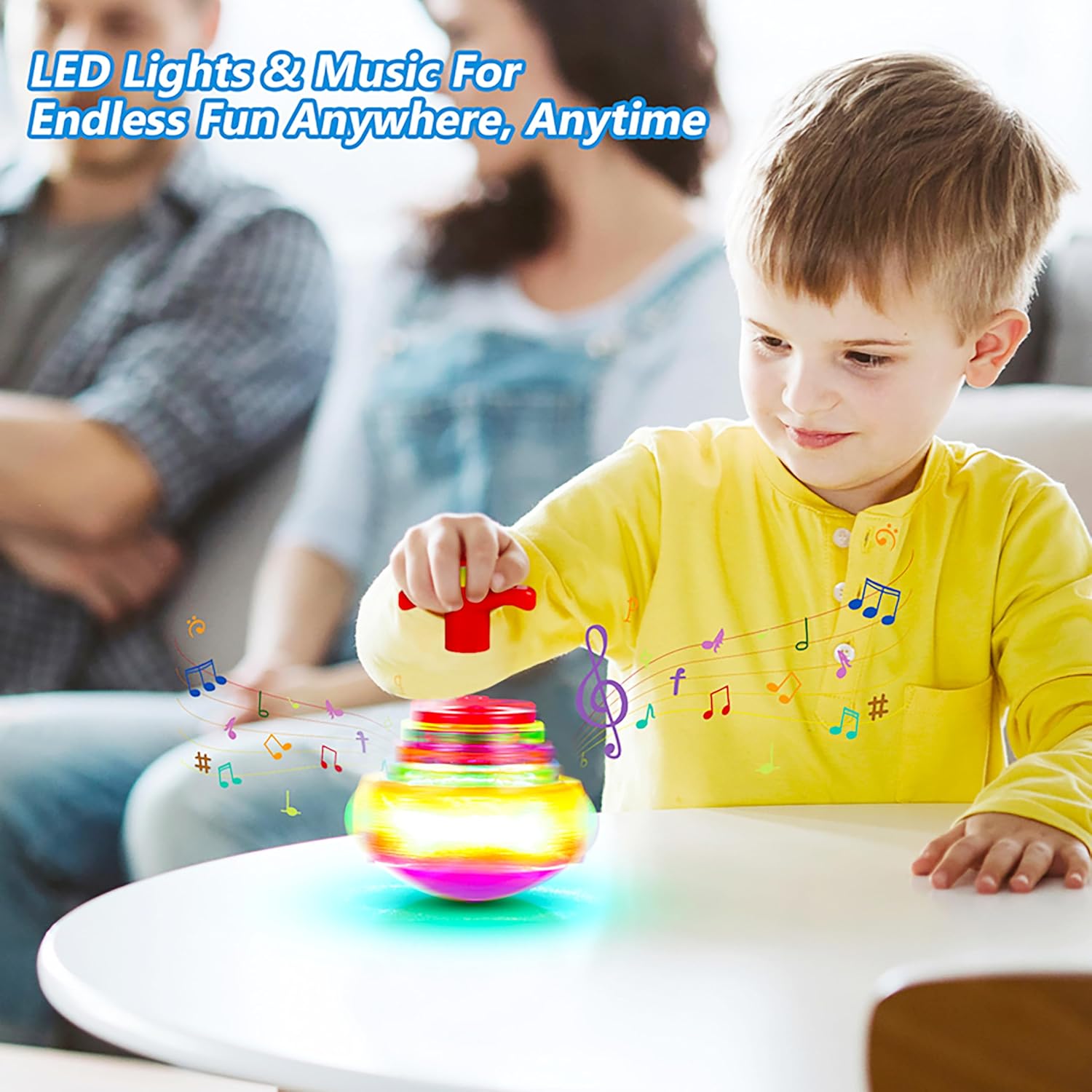 • 【LIGHTS AND MUSIC】- As the UFO top spins, colorful LED lights illuminate, creating a dazzling display that will mesmerize kids and adults alike. The accompanying fun sound effects add an extra layer of excitement, simulating the experience of a real UFO flying through the sky. Lights and music works when the top is spinning. As it slows down, lights and music also stops.