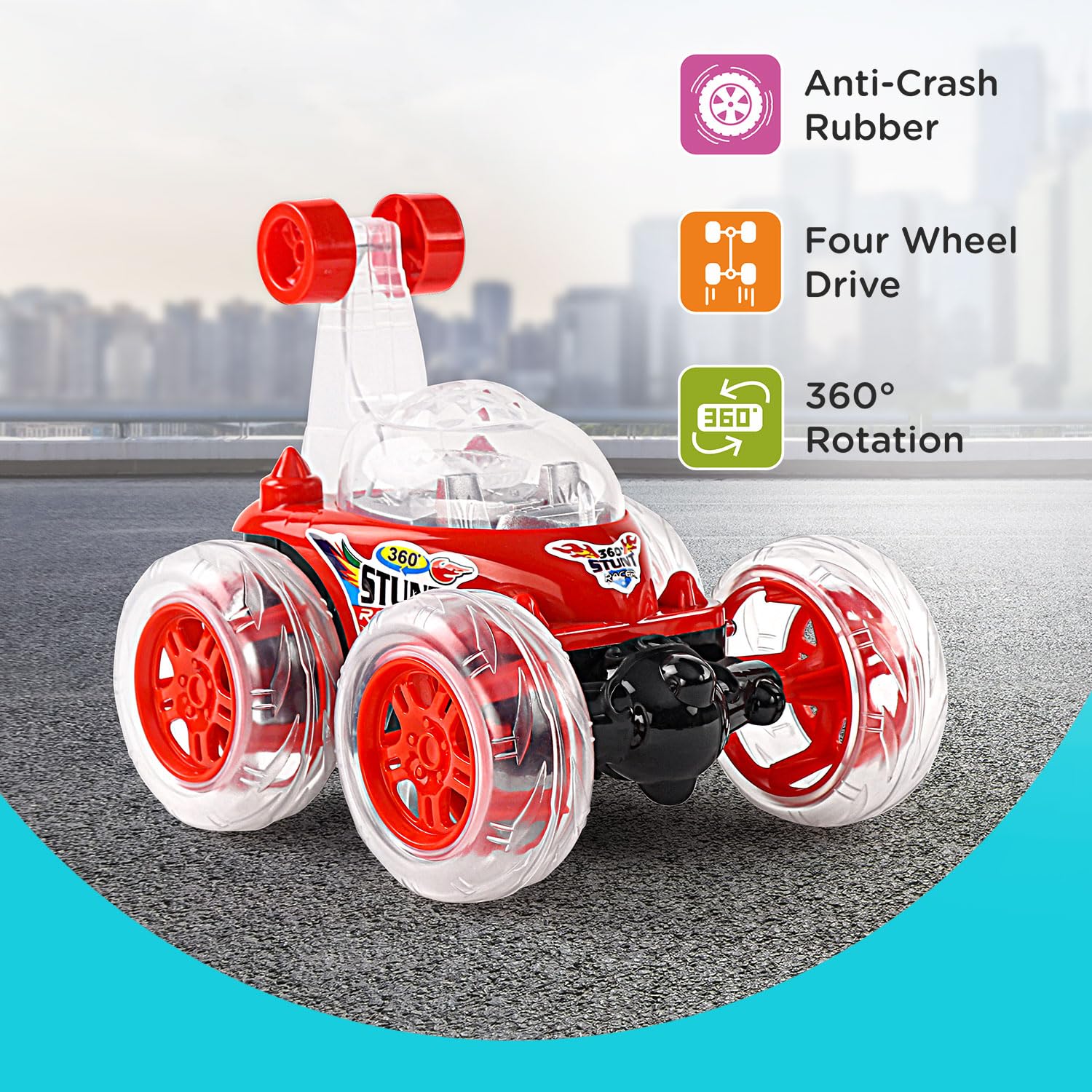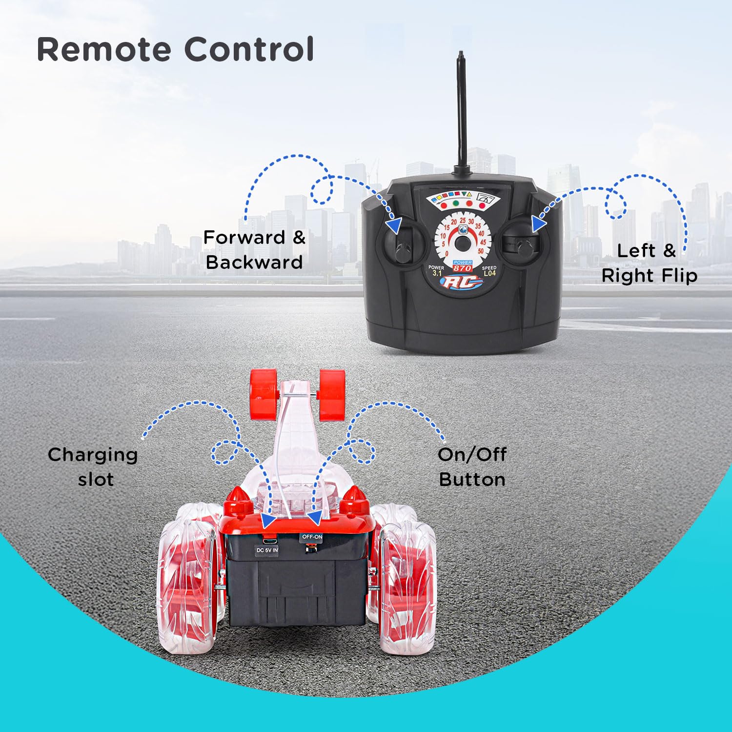 Remote Control Rechargable Acrobatic 360 Degree Twisting Stunt Car with Music & Lights for Kids