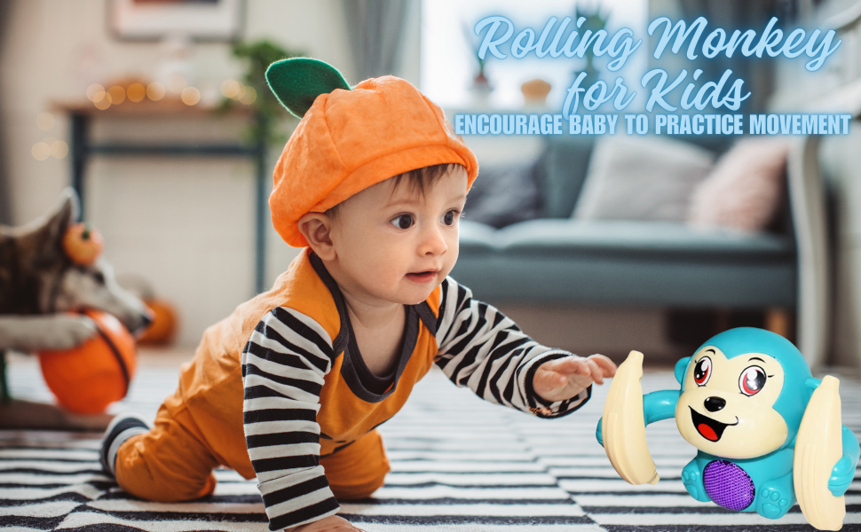 🐒 Lighting, music, cute animal cartoon model, toy, voice control, banana monkey toys for kids.;🐒 360˚ Rotation- The little monkey is holding a simulated banana and it spins in 360 degree. It even leads the baby to crawl.; 🐒 Durable and safe for children, it contains water-based paint and has a non-toxic coating. Dynamic music and lighting will add more fun in the play, help to improve baby’s good hearing and vision.;🐒 Battery Operated- Wembley little monkey requires 3 x 1.5V “AAA” Batteries (Not Included). Always use new batteries for better performance.